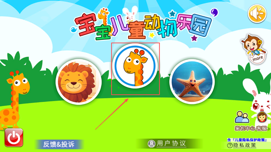 1、初次进入游戏时,小朋友会看到一个色彩缤纷的欢迎界面,可以选择进入森林、草原、极地等不同生态环境开始探索之旅。