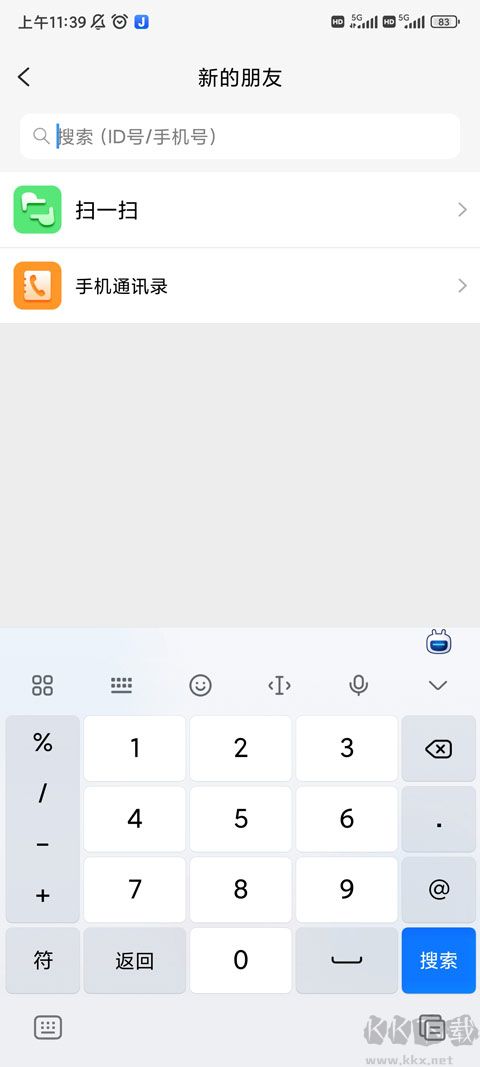 2、搜索专属编号:点击右上方联系人图标,输入对方专属编号完成添加。