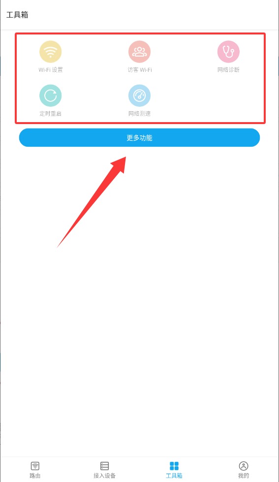 2、在主界面底部导航栏可见路由管理、连接设备、实用工具及个人中心四大核心功能区。