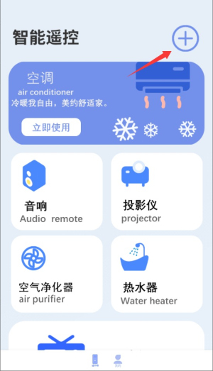 2、进入主界面后,点击右上角添加按钮进入家电设备配置页面。