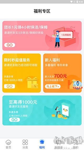 3、而在【福利】页面,我们还能看到各种福利活动,如限时秒超值服务、新人福利等。