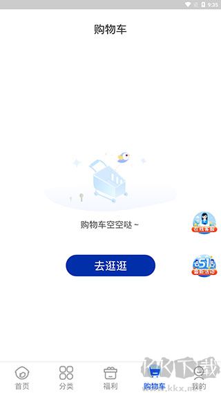 4、你在分类页面选购的所有商品都可以在【购物车】页面中看到,并可以在此一键结算。