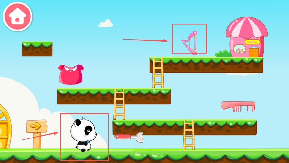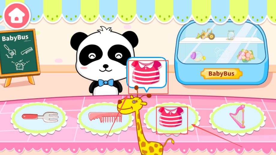 1、选择绘画任务开始创作体验过程,帮助熊猫kiki修复商店里被破坏的各种物品并学习绘画基础技巧。