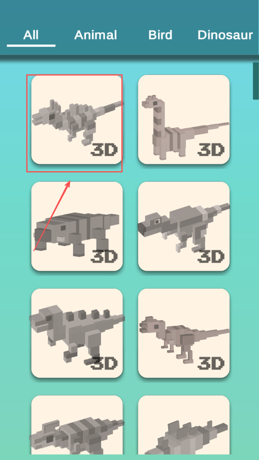 1、选择喜欢的动物图案开始填色创作过程,从多种像素化动物中选择创作对象进行个性化表达。