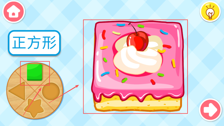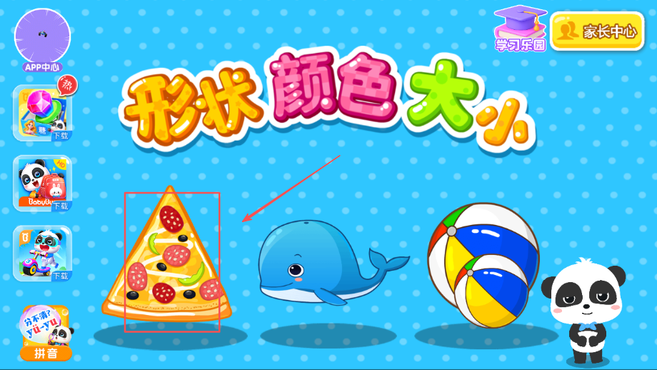 4、参与挑战任务检验学习成果水平,通过趣味问答测试对形状颜色大小的掌握程度和应用能力。