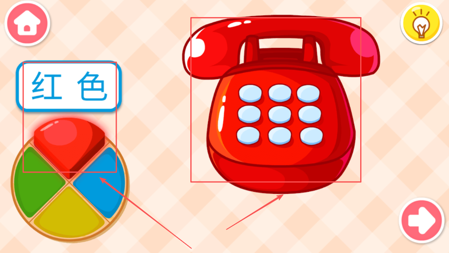 3、画面设计可爱生动吸引注意力,物品造型亲切熟悉,色彩明亮柔和协调,吸引孩子注意力和探索欲望。
