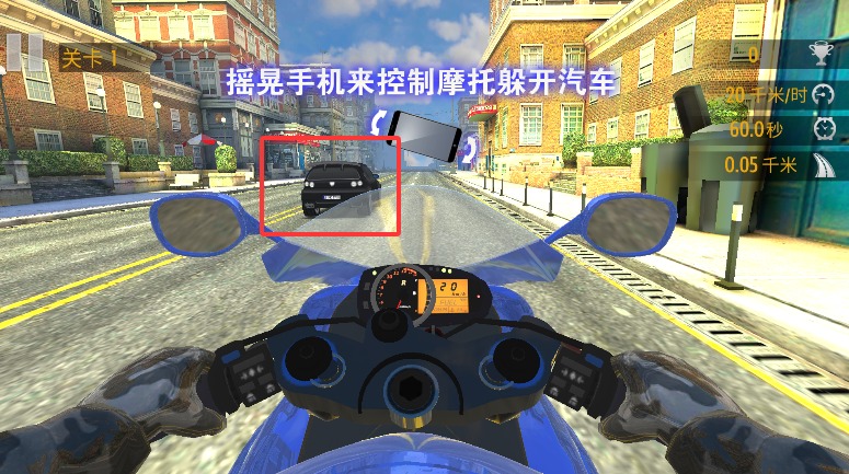 3、通过倾斜移动电子设备来控制摩托车转向轨迹,及时规避前方行驶的其他车辆。