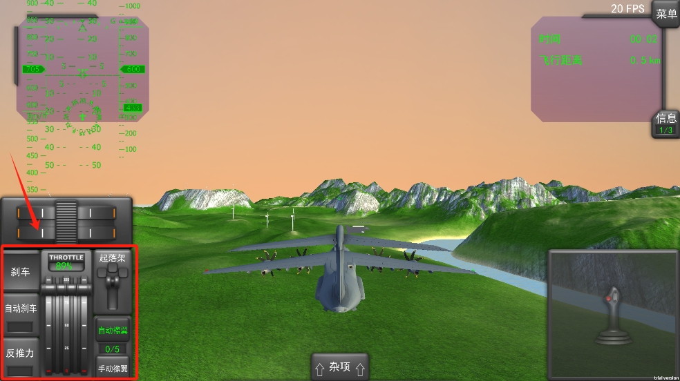 4、使用左侧控制面板调整飞行参数,控制飞机,开始你的飞行冒险。