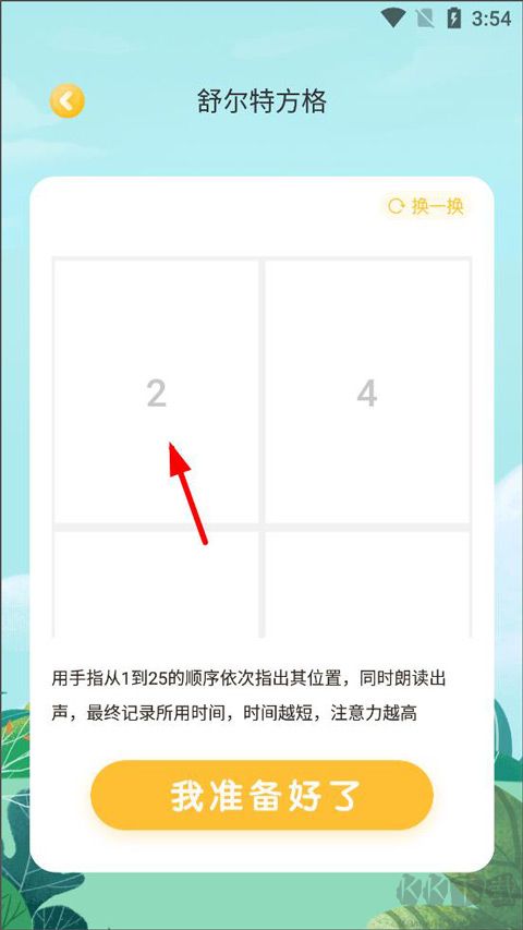 4、点开数字练习,可从第一关开启,练习采用舒尔特方格,用手指按 1-25 的顺序依次指出对应位置,同时大声读出,最终记录消耗时长,时长越短注意力越集中。