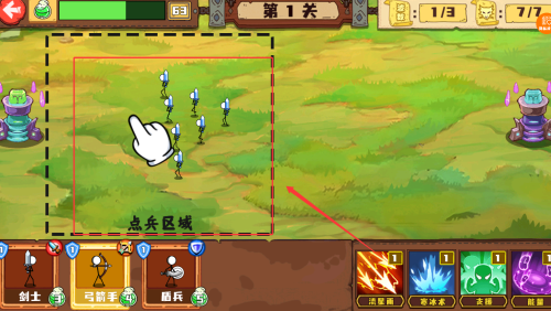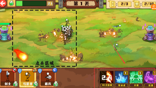 1、进入游戏后,首先需点兵布阵,依据关卡敌人特点搭配剑士、骑兵与弓箭手等不同兵种,构建均衡阵容,并利用战术调整站位。