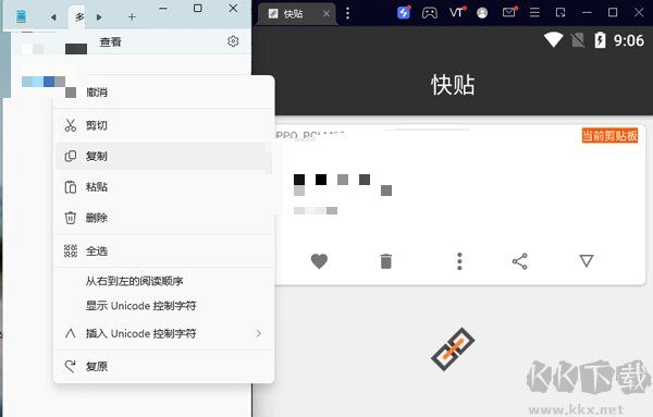 1、手机上复制的内容都会记录在快贴的剪贴管理工具中,若电脑安装了电脑版快贴,同样能实现跨设备记录,此处以电脑上的安卓模拟器为例说明。