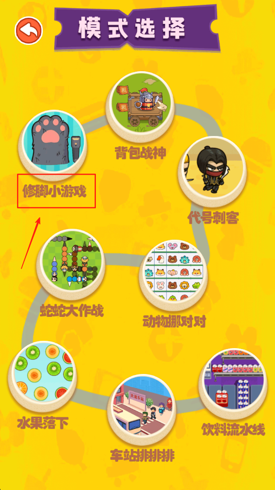2、在模式选择界面,点击你感兴趣的游戏模式,例如“修脚小游戏”。