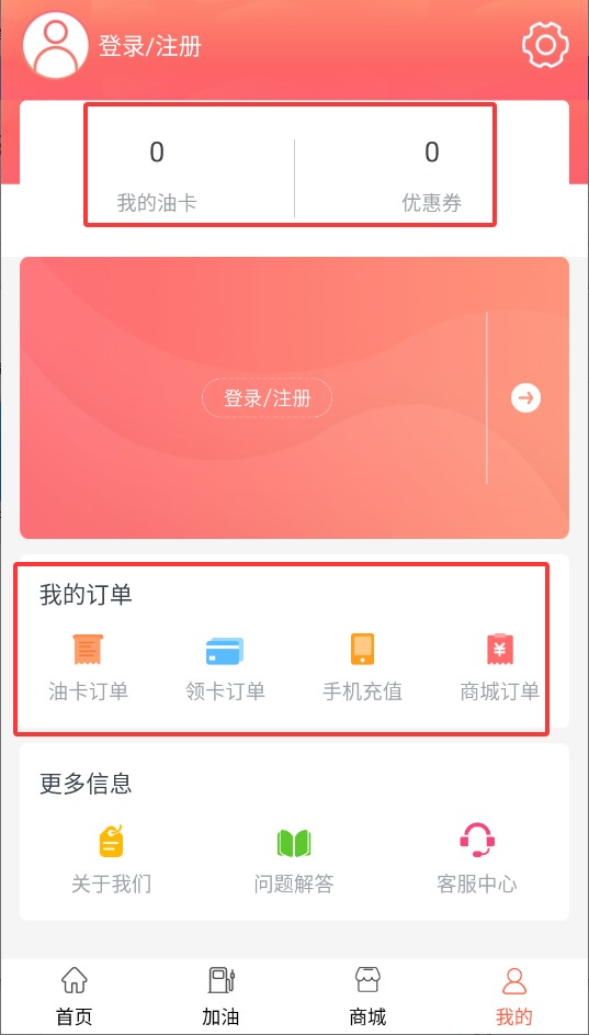 4、个人中心集中展示绑定的油卡、可用优惠券及所有订单的详细进度。