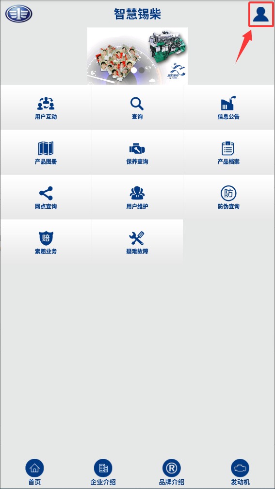 4、锡柴app软件设有用户互动、查询、信息公告、产品图册、紧急救援、保养查询、网点查询、防伪查询、疑难故障等10多个栏目,用户可查询发动机信息和配件信息;