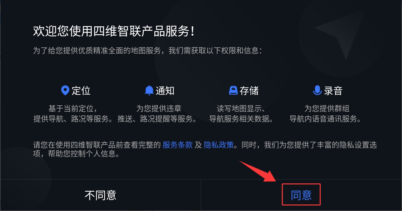 1、首次启动应用时需点击同意用户协议,方可进入导航主界面。