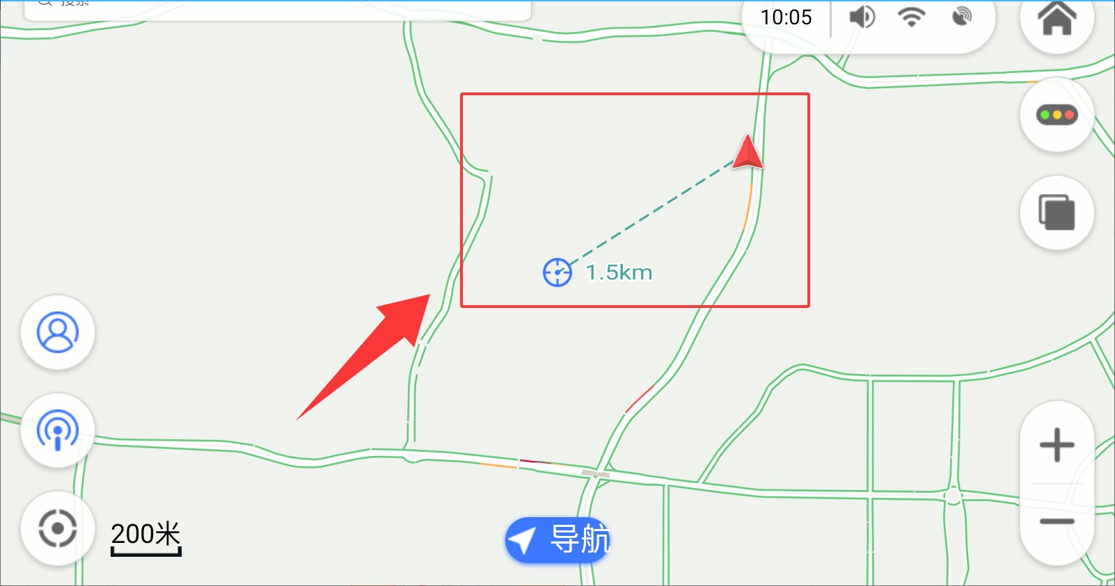 2、系统将自动显示目标位置与当前所在位置的实际距离及路线概览。