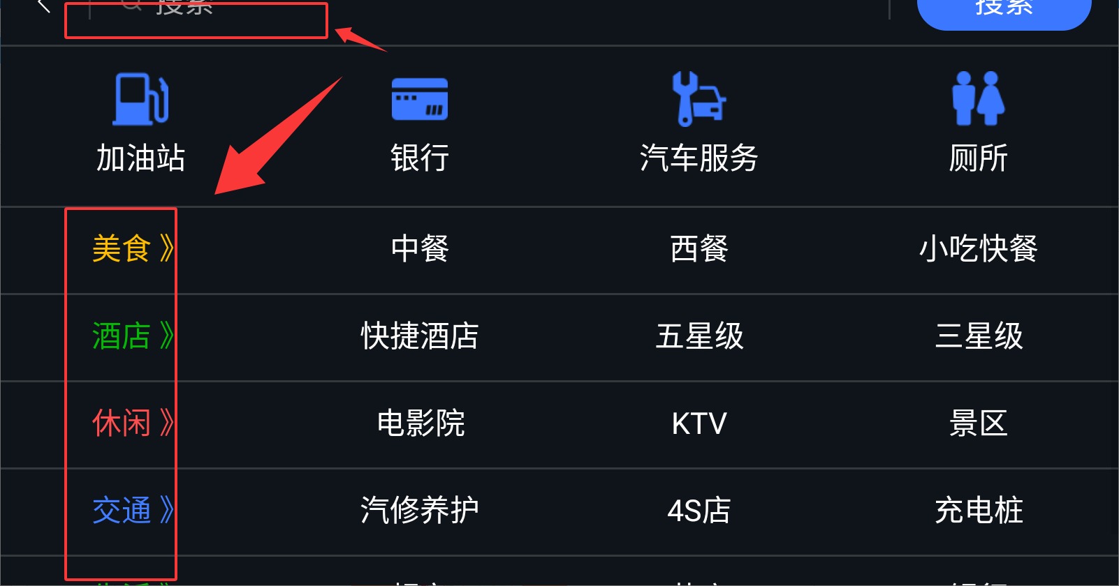 3、支持通过分类(如美食、酒店、休闲场所、交通枢纽)快速检索目的地。