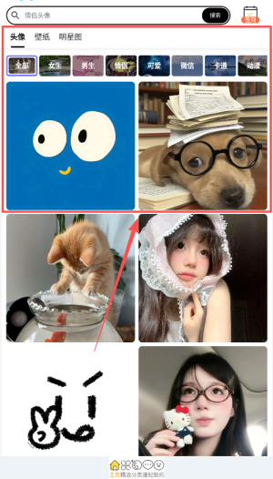 1、打开应用后浏览丰富头像分类,依据喜好选择合适类型,轻松找到既符合自身风格又时尚的头像。
