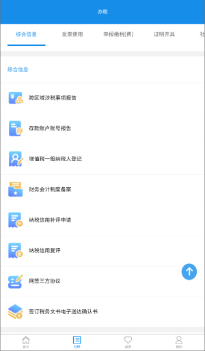 拥有发票查询、通知公告、网上办税、征期日历、办税地图、纳税人学堂等实用功能。方便纳税人办理相关税政业务。