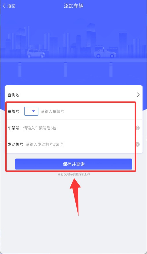 1、启动软件后点击首页“添加车辆”功能,输入车牌号与发动机号进行车辆绑定。