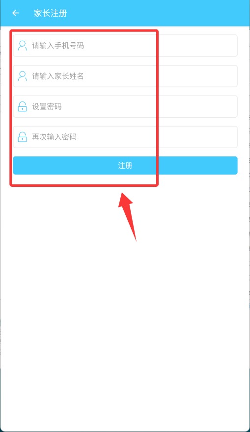 2、在登录页选择"家长注册"选项,进入监护人信息填写界面。