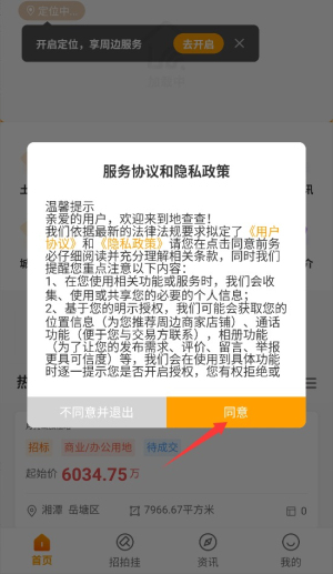 1、首次启动应用时,系统会显示用户协议和隐私政策,阅读后点击同意按钮进入主界面。