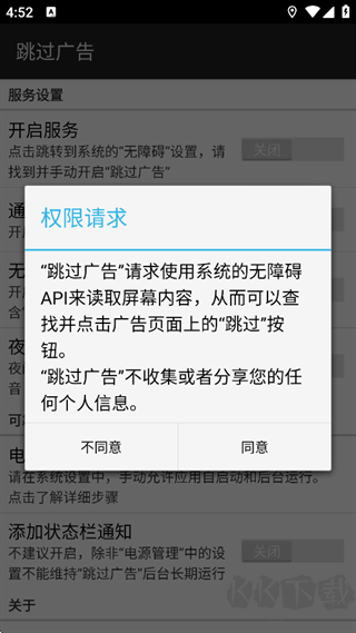 仅需启用系统提供的“无障碍服务”授权即可正常使用,不索取通讯录、短信、位置、存储空间等无关权限,保障设备安全。