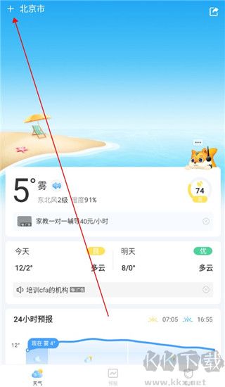2、然后再点击右上角+号添加城市