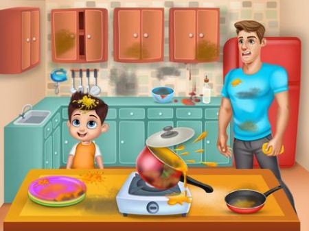 爸爸把房子弄得乱七八糟。我们帮他打扫房子周围的家务吧。保管好所有房间,用所有必要的材料进行清洁。然后进行厨房清洁,冰箱清洁,厕所清洁,学会所有清洁工具,救你爸爸。