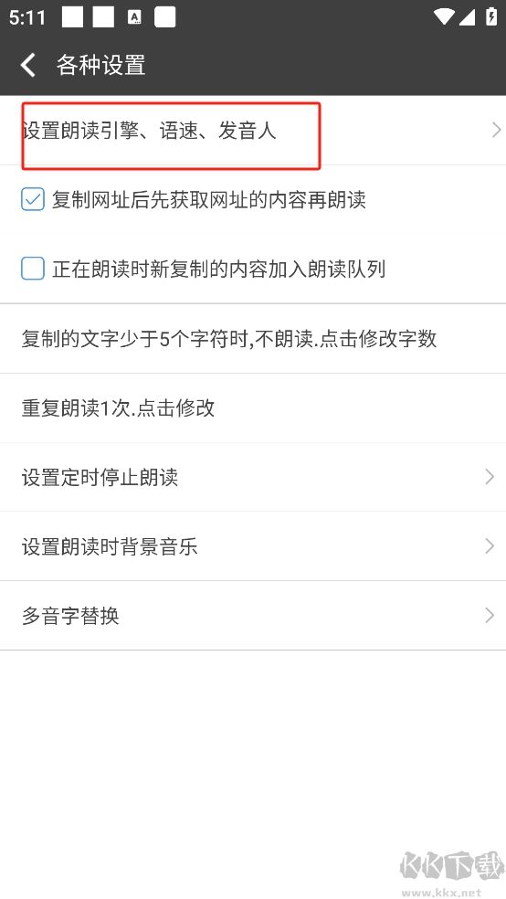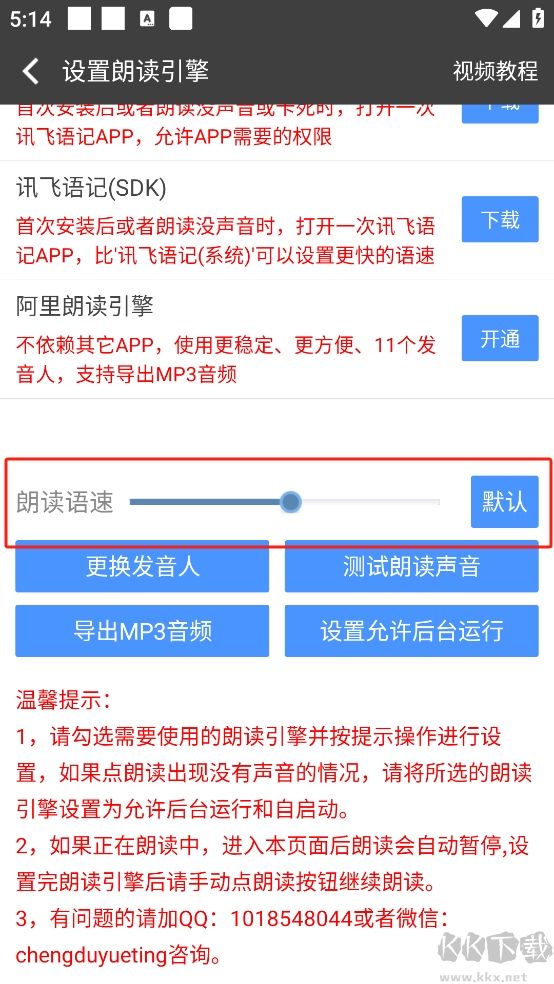 可在“语音设置”中调整语速、音调和发音人。建议选择更自然的语音引擎(如讯飞、云知声),并根据个人习惯调节播放参数。