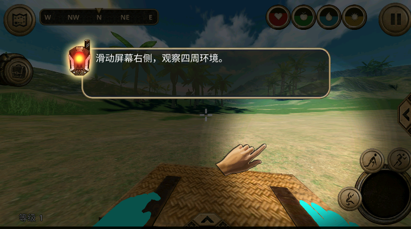 3、使用右侧屏幕滑动调整观察视角范围,全面掌握周围环境与潜在危险情况。