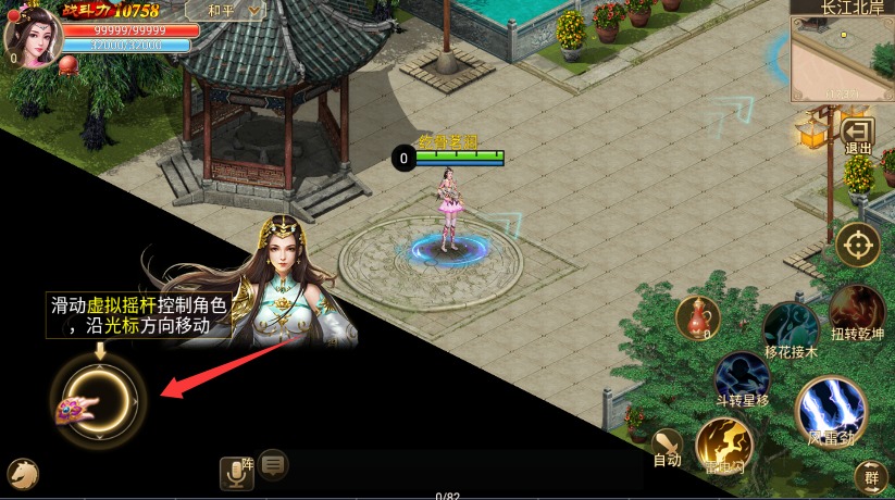 3、进入主场景后滑动虚拟摇杆控制角色,跟随光标指引在场景中自由移动探索。