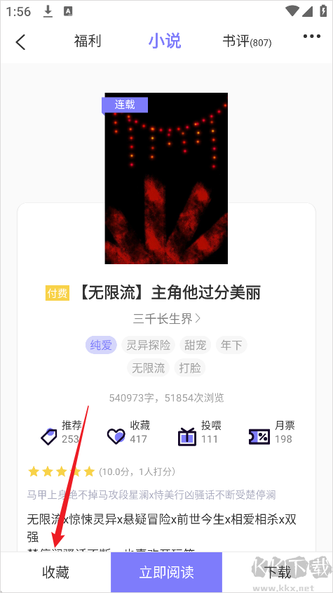 2、如果遇到喜欢的小说,只需点击收藏按钮,就能将作品加入书架,方便随时阅读。