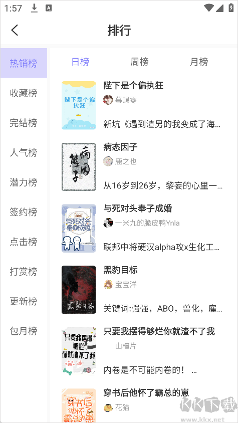 5、排行榜中提供了多种维度的榜单,包括热销榜、日榜、周榜与月榜,帮助你轻松发现热门佳作。