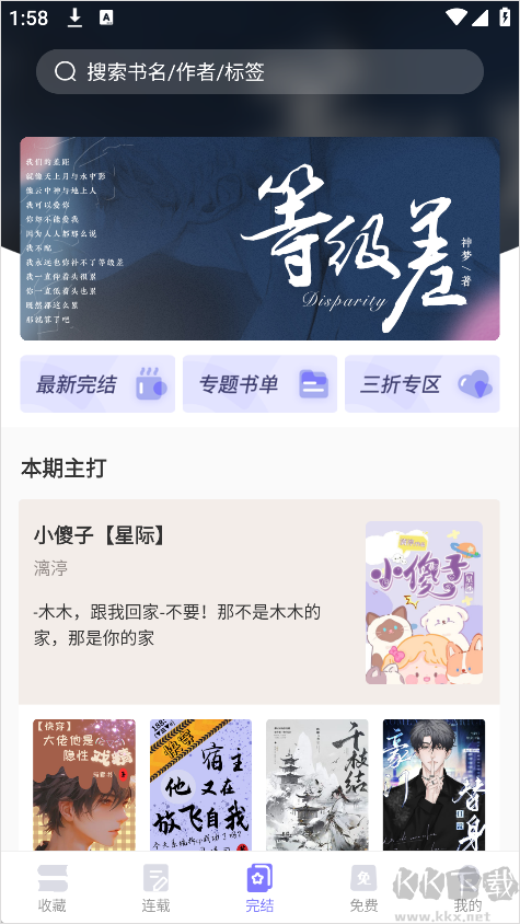 6、在“完结”专区,可以查找已完结的小说,适合喜欢一口气看完故事的读者。