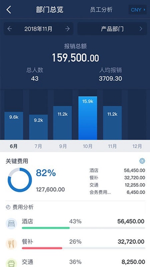 1、各种费用一键报销,包括酒店、出租车、高铁等。
