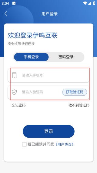 3、进入登录界面输入手机号和验证码,登录过后即可使用。