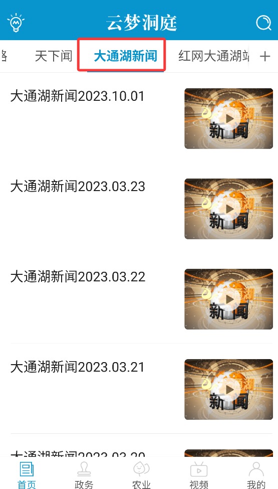 1、打开云梦洞庭app后,您可在看大通湖新闻板块浏览本地最新动态、民生资讯及政务要闻。