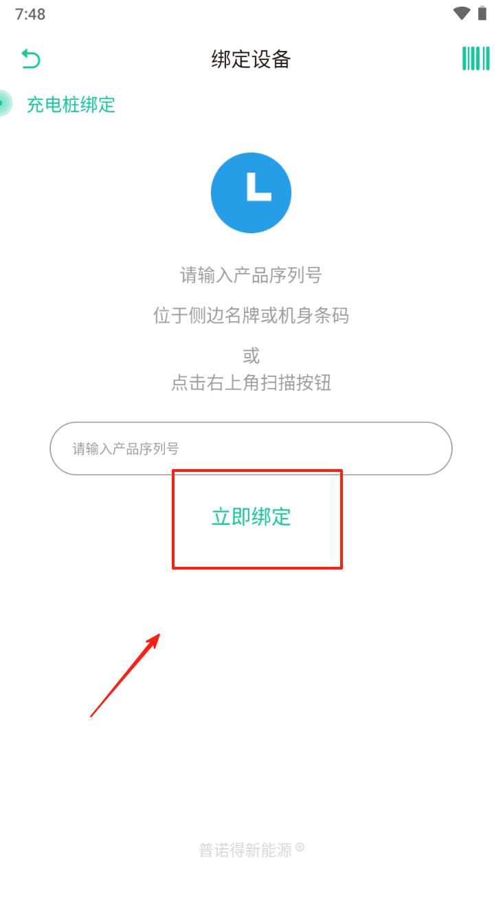3、绑定设备:点击“立即绑定”,输入产品序列号或扫描条码。