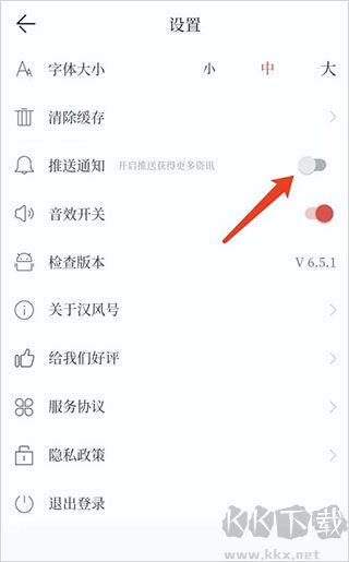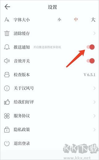 5、就能在手机汉风号 app 里完成关闭推送通知的操作。