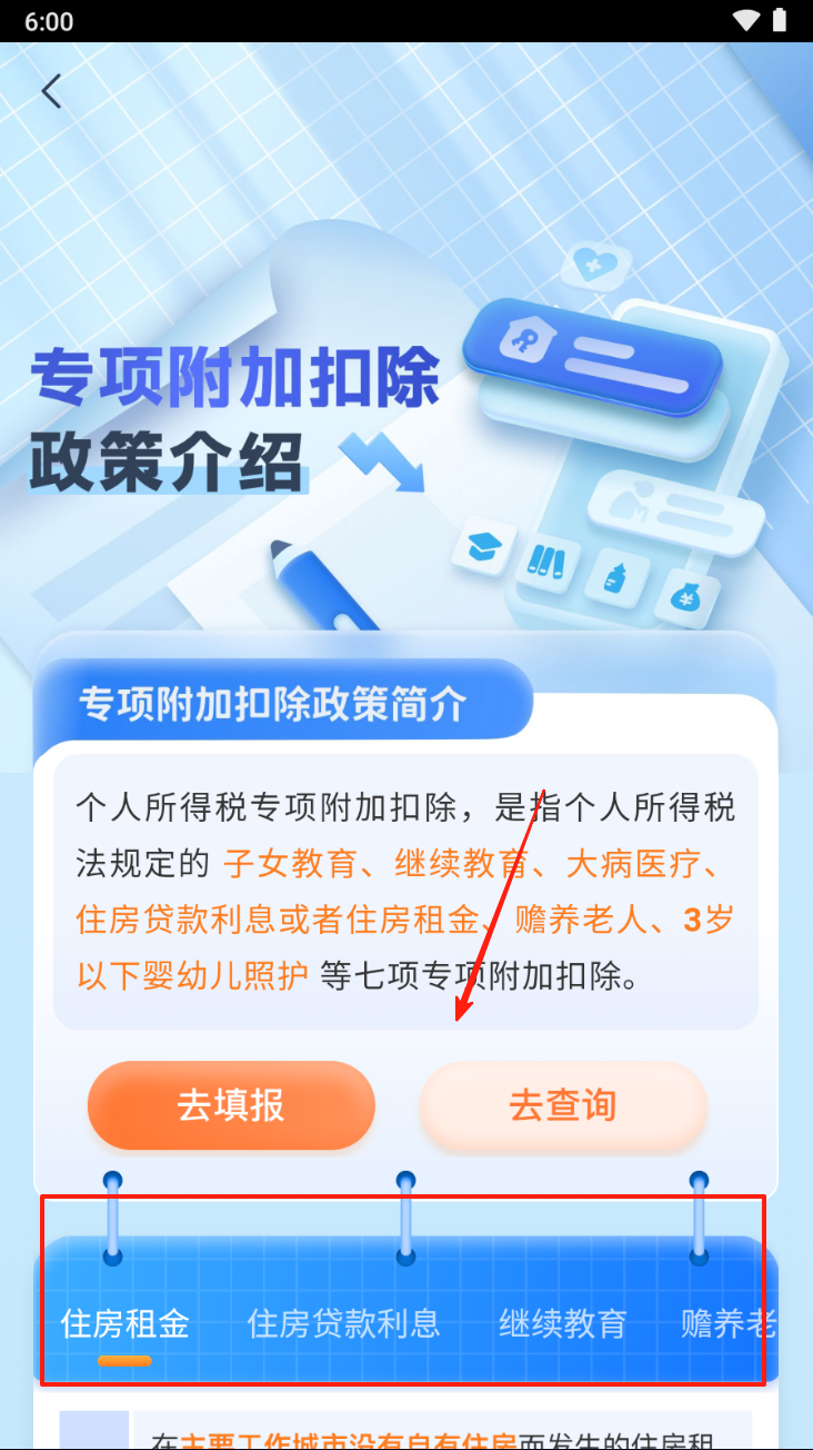 3、了解专项附加扣除政策。点击“专项附加扣除政策介绍”查看详细政策说明。