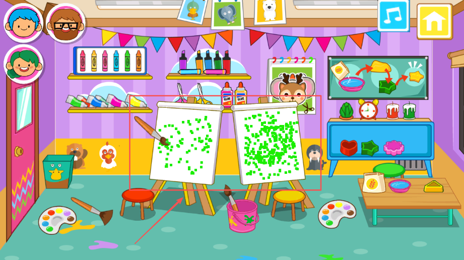 1、画面风格卡通可爱生动形象逼真,色彩明亮柔和协调统一和谐,吸引孩子注意力,增强游戏趣味性,营造愉悦的学习氛围和环境体验效果。
