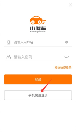 3、选择"快速注册"选项,通过手机短信验证码完成车商账户创建。