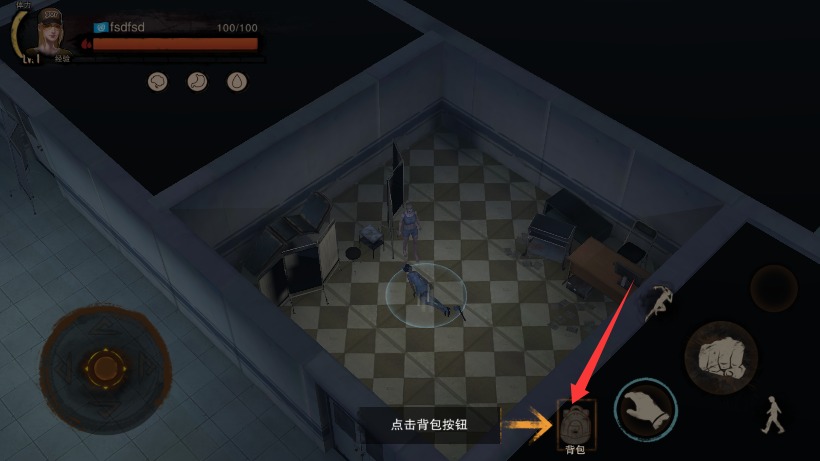 3、拾取散落在地面的各类武器道具,点击背包按钮查看已收集的物品清单。