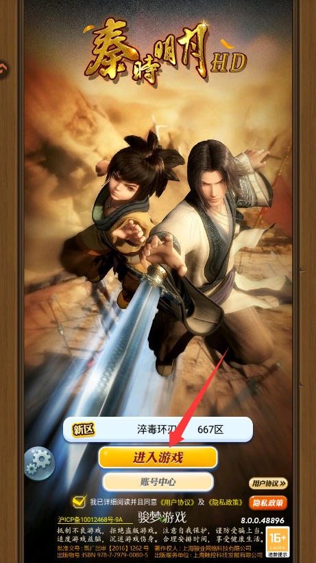 1、启动游戏后选择合适的区服点击进入,即可开启这段以秦时明月为背景的武侠旅程。