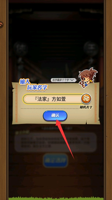 2、输入你心仪的玩家名字并点击确认按钮,完成个人身份的基础设定与注册流程。