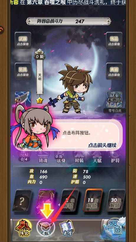 3、点击布阵功能按钮进入阵容编辑界面,根据角色特性安排合理的站位布局策略。