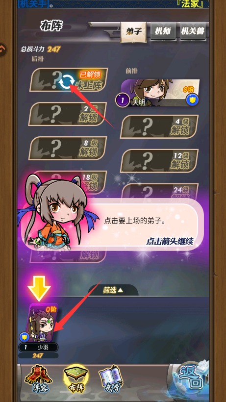 4、从弟子库中挑选需要上阵的角色成员,确认后即可进入自动回合制战斗场景。
