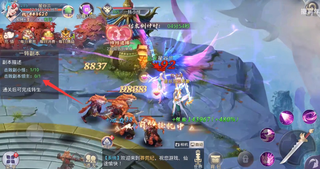 3、选择副本模式进入战斗挑战场景,清剿区域内所有怪物完成关卡挑战目标。