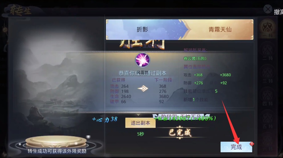4、顺利通关后点击完成按钮确认结算,获取丰厚的任务结算奖励资源内容。